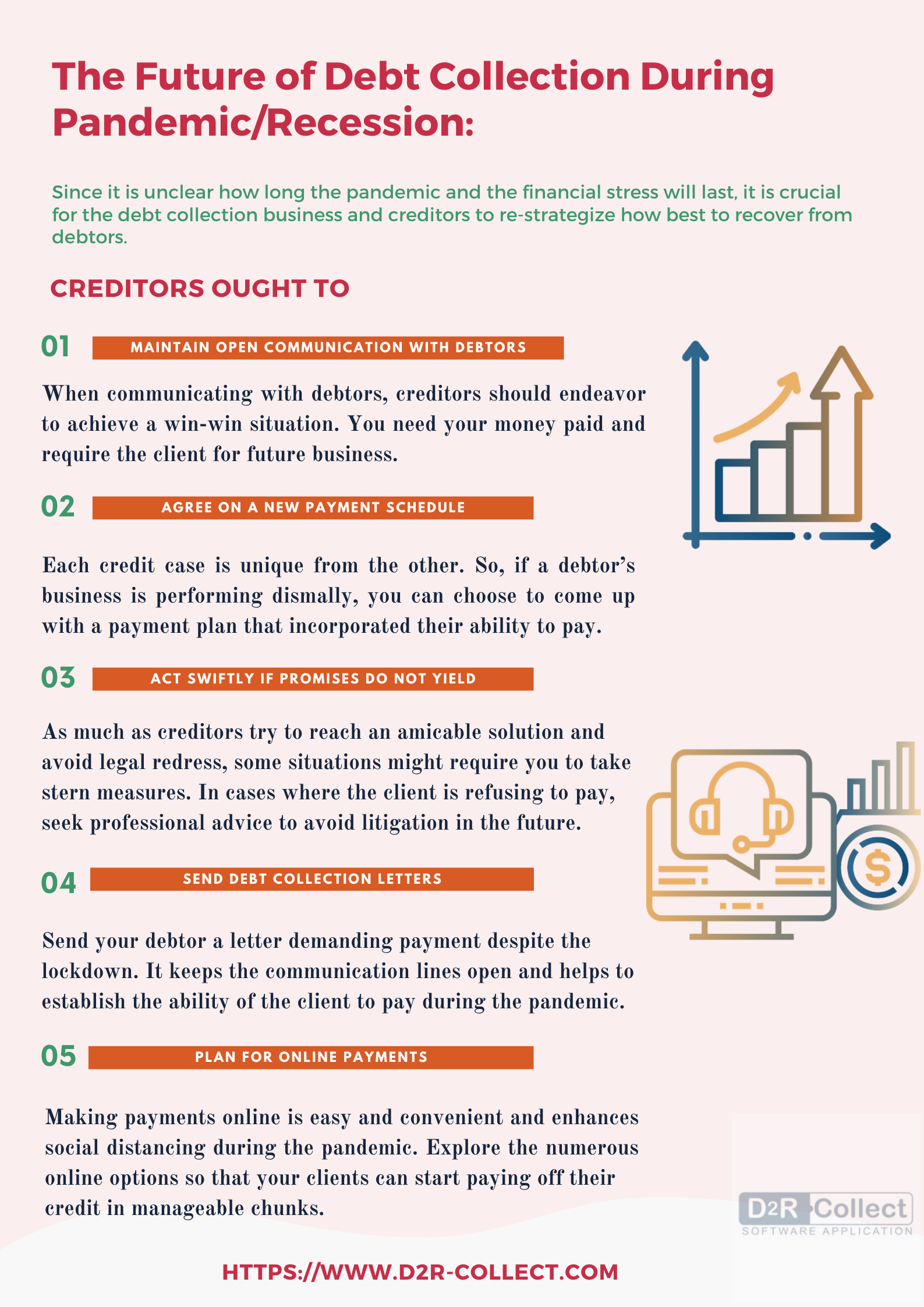 Since it is unclear how long the pandemic and financial stress will last, it is crucial for the debt collection business and creditors to re-strategize the recovery of debt from their debtors.
